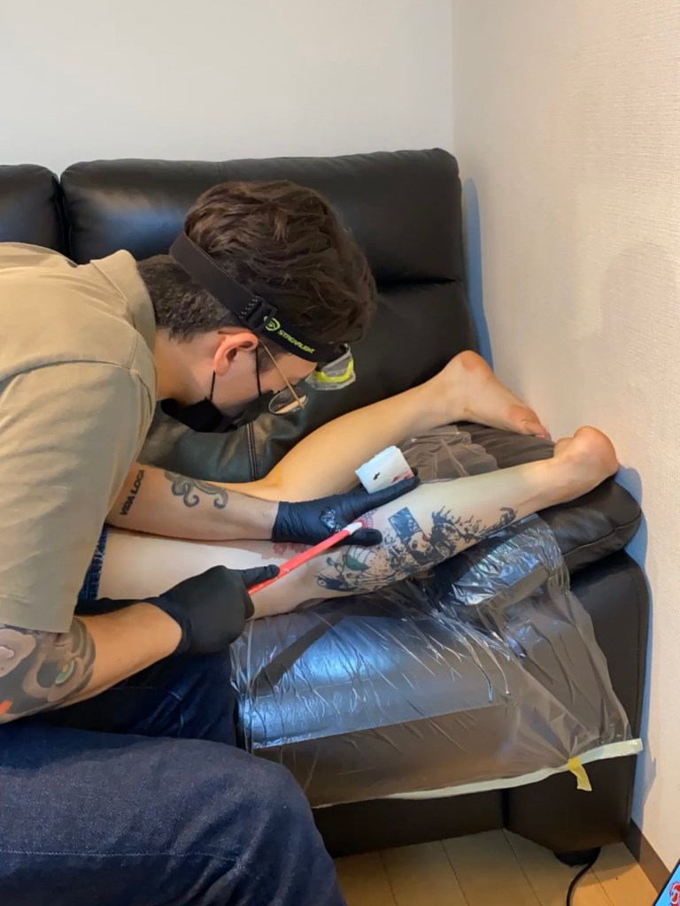 I am Japanese and I do Japanese traditional-style, hand applied tattooing. The outline is done by machine.